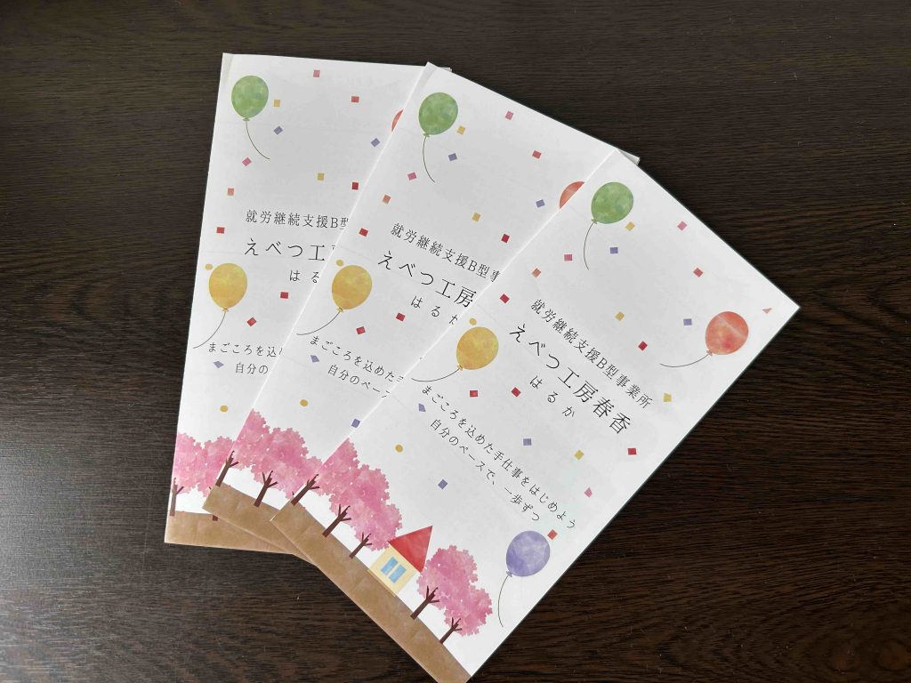 ニュース2026.03.19 春香のパンフレット ツイート シェア はてブ 送る Pocket えべつ工房春香のパンフレットが完成しました。 経験できる仕事の内容や1日の流れなど、より分かりやすくご紹介しております。ご利用を検討されている方やご家族、関係機関の皆さまに、当事業所についてご理解いただく一助となれば幸いです。 ツイート シェア はてブ 送る Pocket